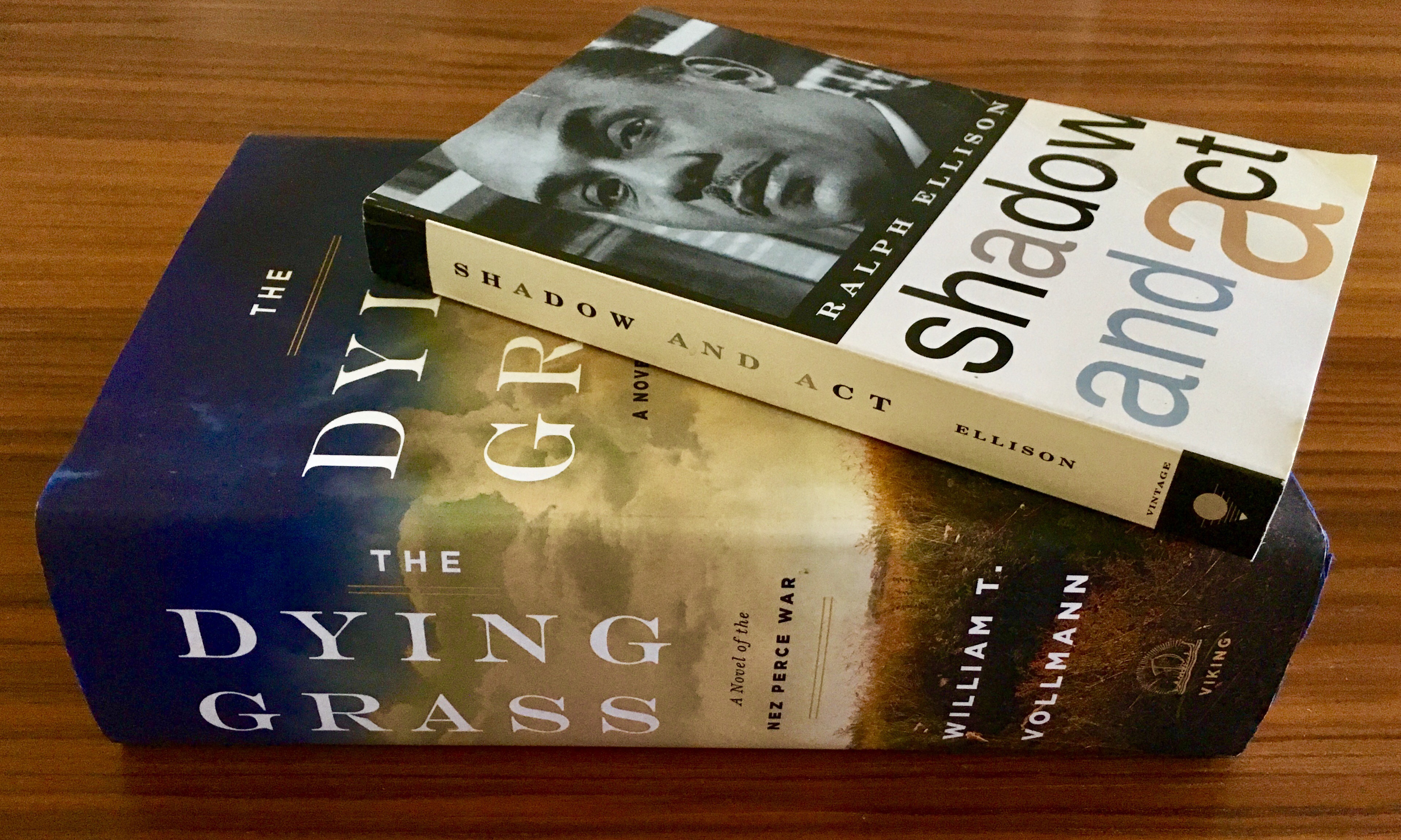 I tried William Vollmann’s The Dying Grass a few times last year, both as an audiobook and as an ebook, but it got the best of me. Spotted it at my favorite used book store for a measly twelve bucks, so. Like, we’ll see—although it’s much, much more accessible in print than on screen—the form, the lines on the page—they makes more sense, evoke Whitman more than the ebook or the audio. I also picked up Ralph Ellison’s collection Shadow and Act somewhat randomly—just started reading it and got carried away. Great stuff.