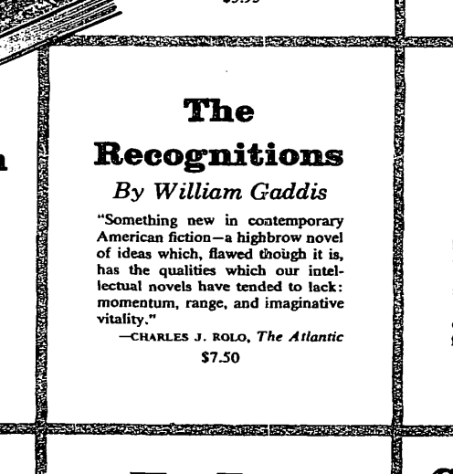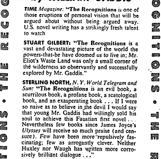 The above ad was published in The New York Times, 16 March 1955. Blurbs, bigger (Sterling North’s is my fave):