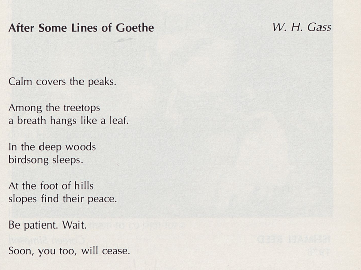 “After Some Lines of Goethe” — William H. Gass