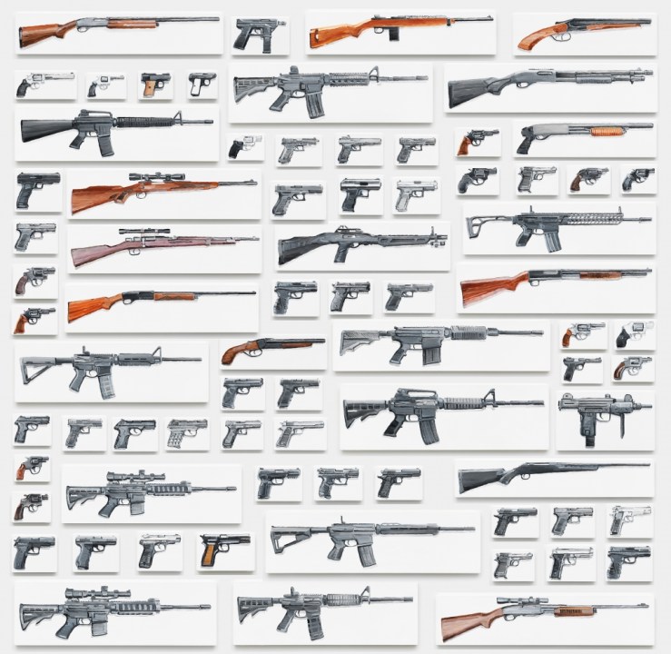 Death by Gun (Or April 14, 1865; November 22, 1963; November 24, 1963; February 21, 1965; August 1, 1966; April 4, 1968; June 3, 1968; June 5, 1968; November 27, 1978; December 8, 1980; September 25, 1982; July 18, 1984; August 20, 1986; October 16, 1991; April 8, 1994; March 30, 1995; September 7, 1996; March 9, 1997; April 20, 1999; July 29, 1999; February 20, 2005; November 6, 2006; April 16, 2007; April 3, 2009; November 5, 2009,m; February 26, 2012; July 20, 2012; August 9, 2014; November 22, 2014; June 17, 2015; July 23, 2015; October 1, 2015; June 12, 2016; July 6, 2016; October 1, 2017; December 14, 2012; December 2, 2015; November 5, 2017; February 14, 2018), 2018 by Cynthia Daignault (b. 1978)