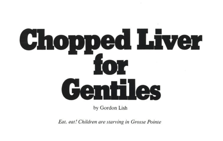 From “Chopped Liver for Gentiles” by Gordon Lish, published in Esquire, 1 March 1977.