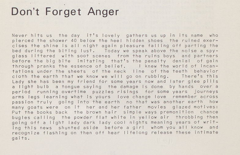 “Don’t Forget Anger” by Ted Berrigan. From Mother #5, Summer 1965.