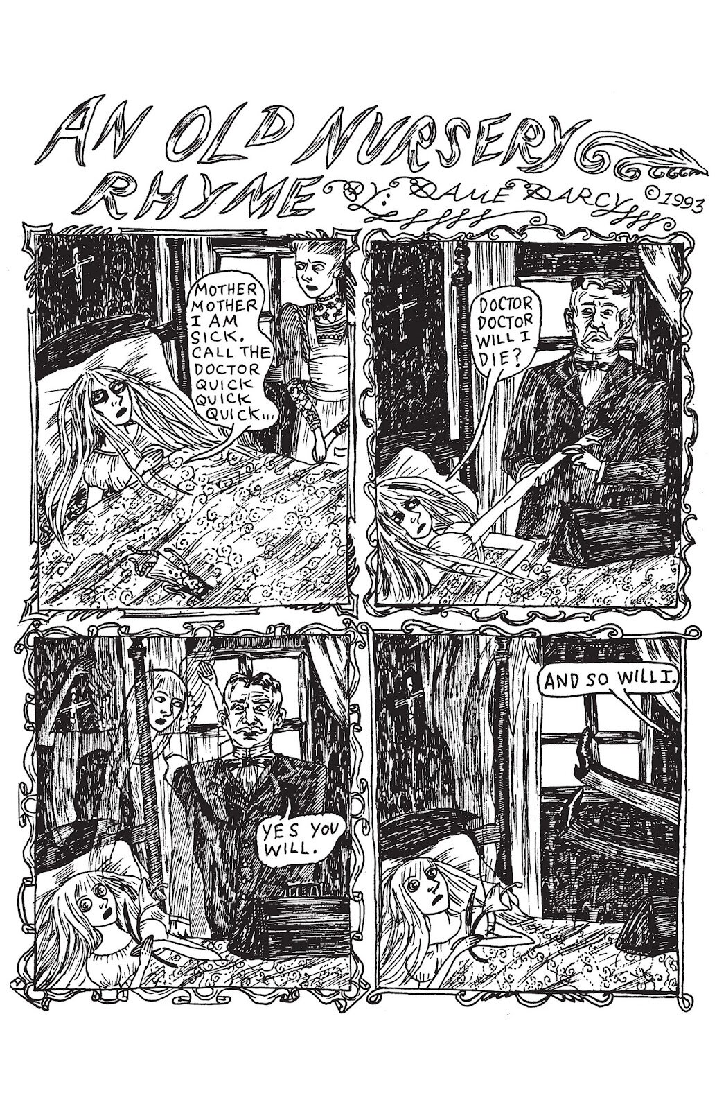 Sunday Comix Posted on April 26, 2026 by Biblioklept “An Old Nursery Rhyme” by Dame Darcy. From Meat Cake #1, 1993, Fantagraphics. Share this: Share on X (Opens in new window) X Share on Tumblr (Opens in new window) Tumblr Share on Reddit (Opens in new window) Reddit Share on Pinterest (Opens in new window) Pinterest Share on Facebook (Opens in new window) Facebook Share on LinkedIn (Opens in new window) LinkedIn Email a link to a friend (Opens in new window) Email Print (Opens in new window) Print Like Loading... Related Published by Biblioklept View all posts by Biblioklept