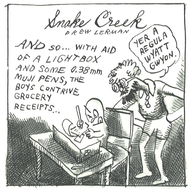 I am a huge fan of Atticus Lish’s 2014 novel Preparation for the Next Life, and I’m a fan of indie Tyrant Books, but I’d never heard of his 2011 collection of doodles, Life Is With People. The book wasn’t even shelved properly yet, and I was initially attracted to its strange pink and black cover. It turned out the bookseller who checked out my purchases that day (the Lish and some books for my son) had brought the Lish in; his interest in it was in Lish-as-son-of-Lish. We chatted about Barry Hannah a bit and I recommended he read Hob Broun, which I recommend to anyone who expresses admiration for Hannah or Father Lish.