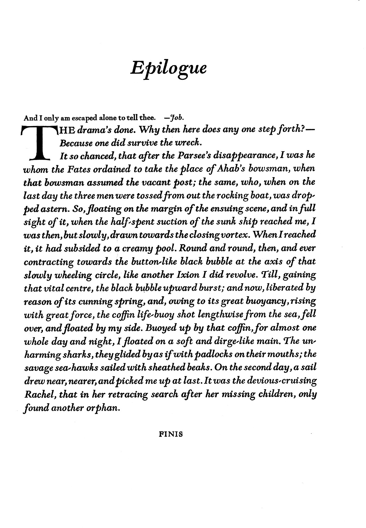 I. In this riff, Chapter 135, “The Chase—Third Day” and the Epilogue of Moby-Dick.
