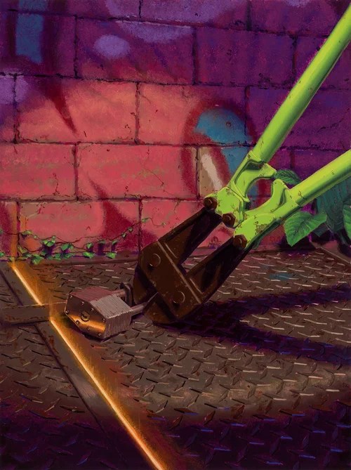 We transition to the parting farewells of Bruno and Daphne; Daphne’s secured her father’s passage with a mariner named Drago. Papa Bruno gives his “li’l midnight pumpkin” a parting gift — “Better than money…It’s information” on the machinations of the InChSyn. Their last moments end with Bruno looking down at his watch, a “Rolex Oyster Perpetual he does not seem to recognize, as if thanks to the psychical ambience he’s been in all evening it has just apported onto his wrist.”
