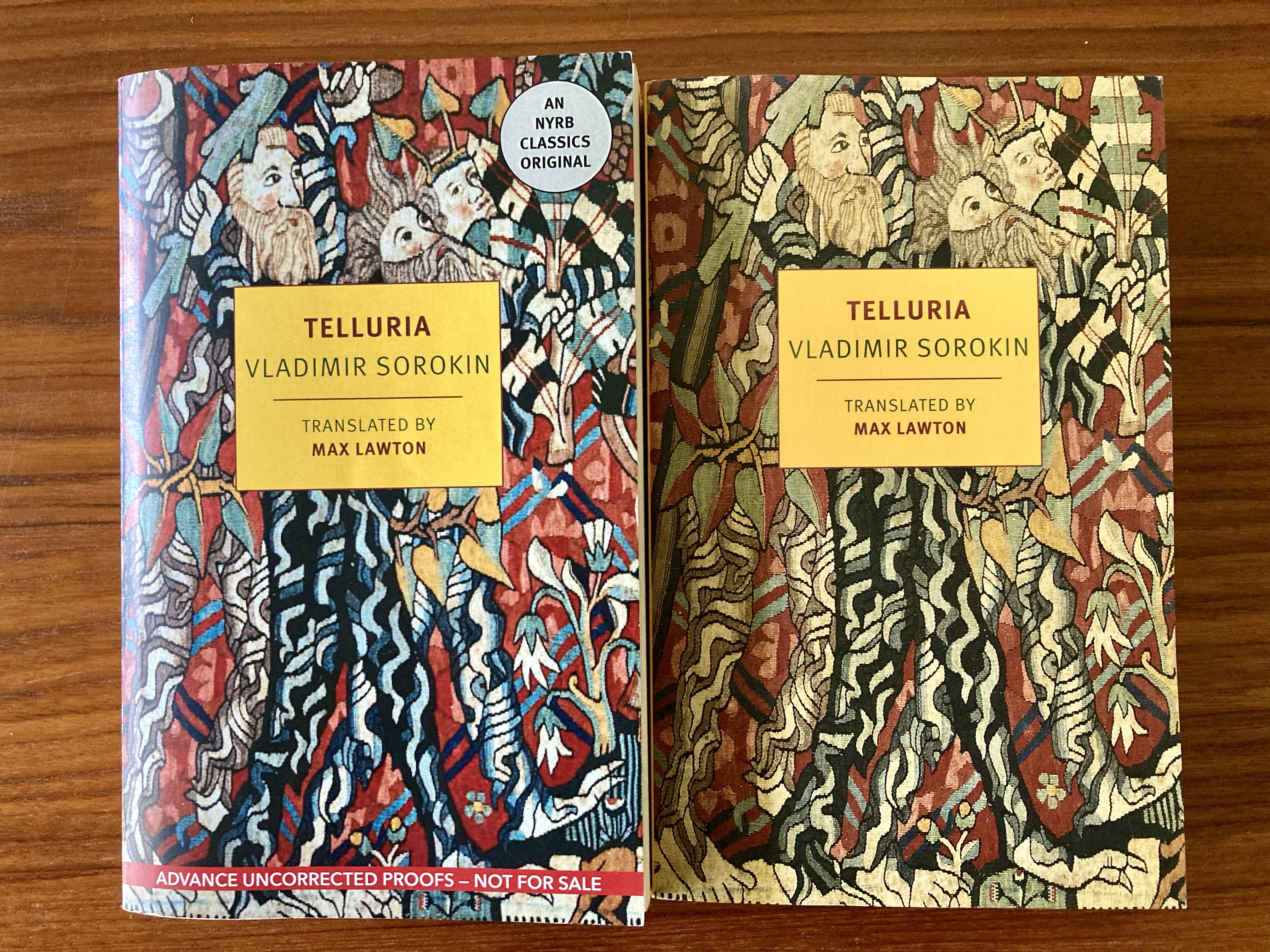 A finished copy of Vladimir Sorokin’s novel Telluria arrived at Biblioklept World Headquarters yesterday. The novel, in translation by Max Lawton, has been my favorite read so far this year. It’s on sale in a few weeks from the good people at NYRB. I would normally share their copy from the back of the book, but I have something better. I’ve got an interview with translator Max Lawton forthcoming, and here’s his description of Telluria:
