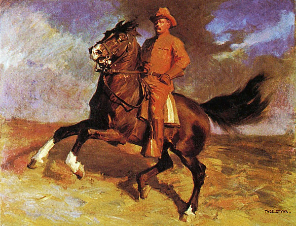 Teddy Roosevelt was the best American president. Just look at this guy. TR: the original rough rider. Painting by Tadé Styka.