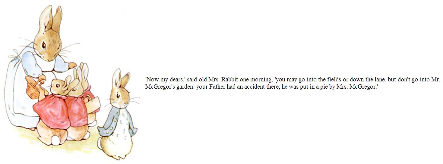 As soon as they had passed, little Benjamin Bunny slid down into the road, and set off—with a hop, skip, and a jump—to call upon his relations, who lived in the wood at the back of Mr. McGregor’s garden.