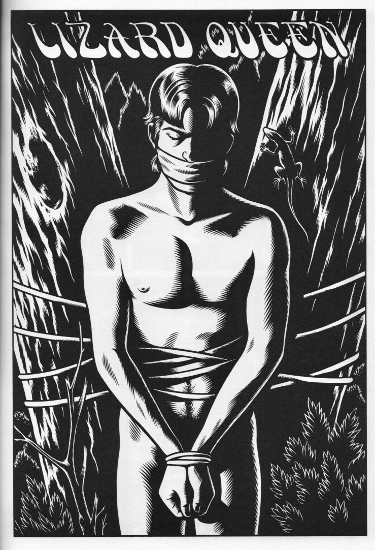 There’s the paranoia and alienation of adolescence Burns crafted in Black Hole, here delivered in a more vibrant, cohesive, and frankly wiser book. There’s the hallucinatory trauma and repression he conveyed in the X’ed Out trilogy (collected a decade ago as Last Look, the title of which prefigures Final Cut). There’s also an absence of parental authority here, a trope that Burns has deployed since 1991’s Curse of the Molemen. (In Final Cut, Brian’s mentally-unstable mother is a dead-ringer for Mrs. Pinkster, the domestic abuse victim rescued by the child-hero of Curse of the Molemen). There’s all the sinister dread and awful beauty that anyone following Burns’ career would expect, synthesized into his most lucid exploration of the inherent problems of artistic expression.