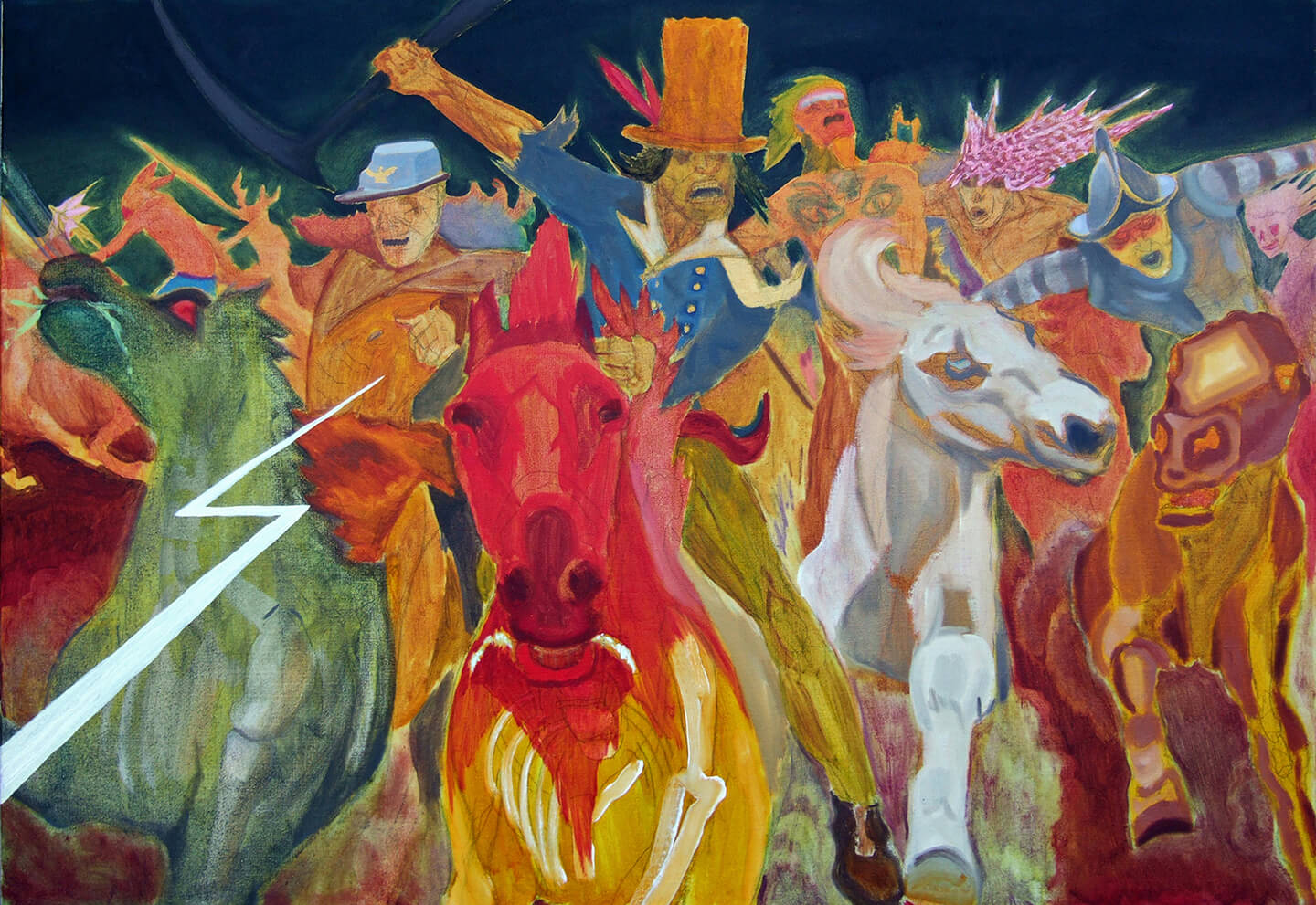 The novel Blood Meridian (1985) establishes Cormac McCarthy as unchallenged king of literary mule carnage. No fewer than fifty-nine specific mules die in the book, plus dozens more that are alluded to in groups and bunches. Mules are shot, roasted, drowned, knifed, and slain by thirst; but the largest number, 50 out of a conducta of 122 mules carrying quicksilver for mining, plummet from a single cliff during an ambush, performing an almost choreographic display of motion and color, “the animals dropping silently as martyrs, turning sedately in the empty air and exploding on the rocks below in startling bursts of blood and silver as the flasks broke open and the mercury loomed wobbling in the air in great sheets and lobes and small trembling satellites. . . . Half a hundred mules had been ridden off the escarpment.”
