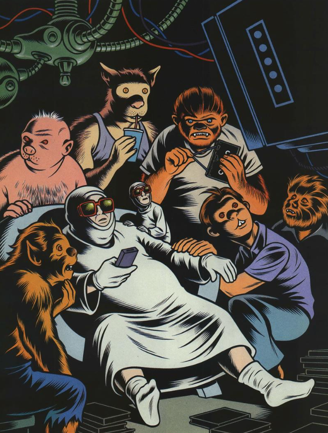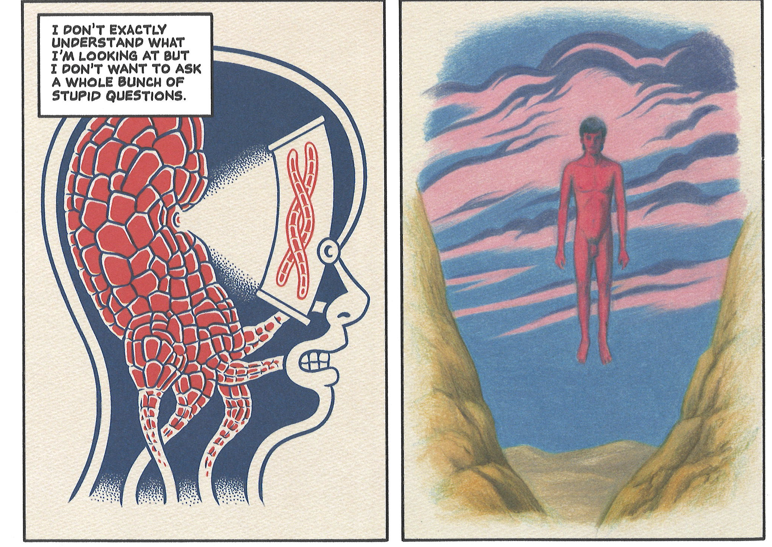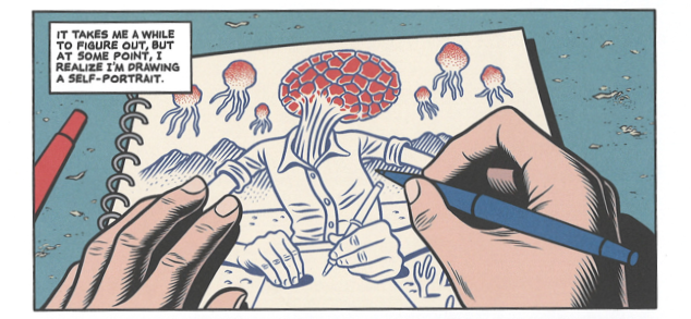 There’s the paranoia and alienation of adolescence Burns crafted in Black Hole, here delivered in a more vibrant, cohesive, and frankly wiser book. There’s the hallucinatory trauma and repression he conveyed in the X’ed Out trilogy (collected a decade ago as Last Look, the title of which prefigures Final Cut). There’s also an absence of parental authority here, a trope that Burns has deployed since 1991’s Curse of the Molemen. (In Final Cut, Brian’s mentally-unstable mother is a dead-ringer for Mrs. Pinkster, the domestic abuse victim rescued by the child-hero of Curse of the Molemen). There’s all the sinister dread and awful beauty that anyone following Burns’ career would expect, synthesized into his most lucid exploration of the inherent problems of artistic expression.