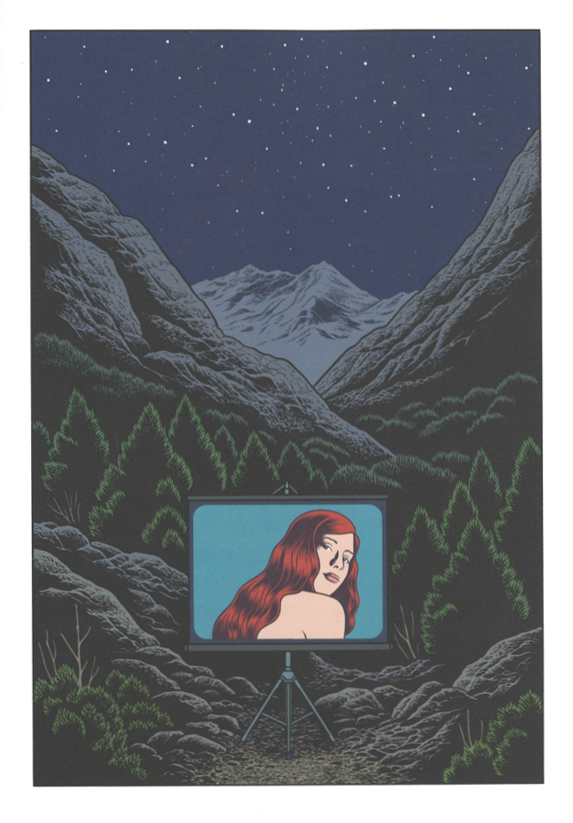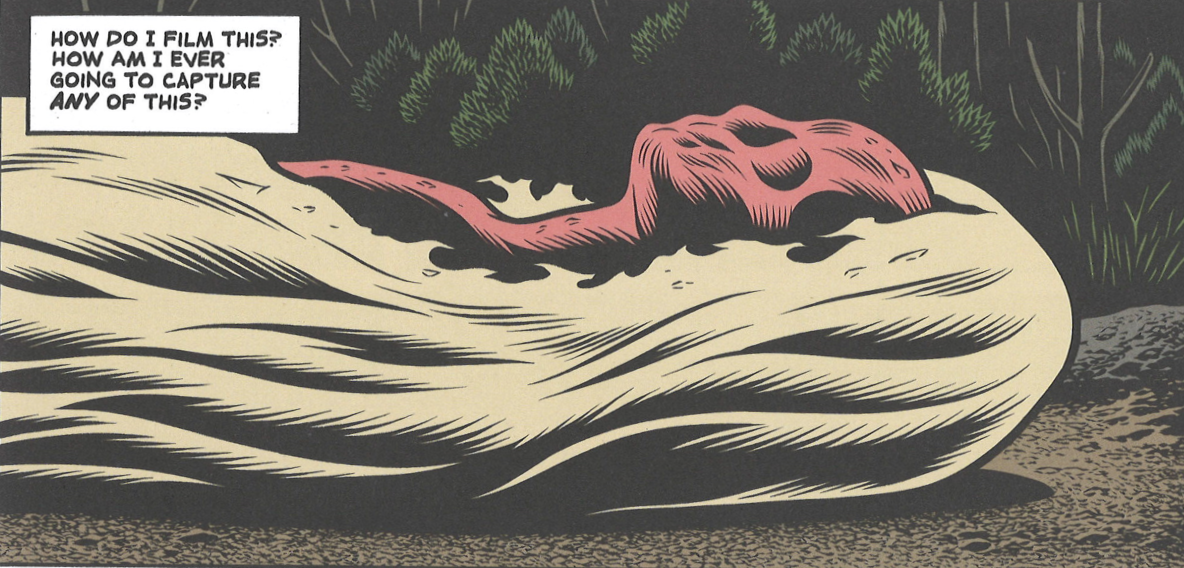 Charles Burns’ latest graphic novel Final Cut tells the story of Brian, an obsessive would-be auteur grappling with an unrealized film project. Brian hopes to assemble his film — also titled Final Cut — from footage he shoots with friends on a weekend camping trip, but the messiness of reality impinges the weird glories of his vibrant imagination. He cannot bring his vision to the screen. He cannot capture all the “fucked-up shit going on inside my head.”
