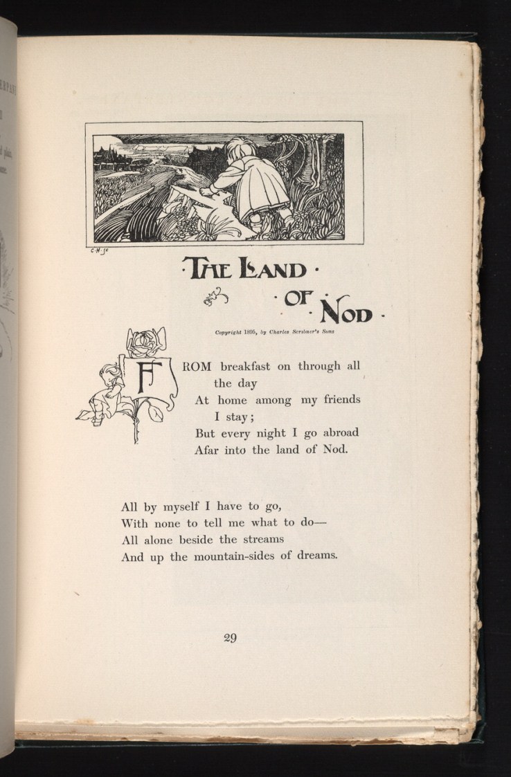 Here we have Alice and her cat Dinah, transformed into a shadowy, even sinister figure, large, bipedal. Bats float in the background, echoing Goya’s famous print El sueño de la razón produce monstruos. The image accompanies Alice’s initial descent into her underland wonderland: “Down, down, down. There was nothing else to do, so Alice soon began talking again,” addressing Dinah, who will “miss me very much to-night, I should think!” Wonderlanding if Dinah might catch a bat, which is something like a mouse, maybe, “Alice began to get rather sleepy, and went on saying to herself, in a dreamy sort of way, ‘Do cats eat bats? Do cats eat bats?’ and sometimes, ‘Do bats eat cats?; for, you see, as she couldn’t answer either question, it didn’t much matter which way she put it.” Jansson’s red flowers suggest poppies, contributing to the scene’s slightly-menacing yet dreamlike vibe. The image ultimately echoes the myth of Hades and Persephone.