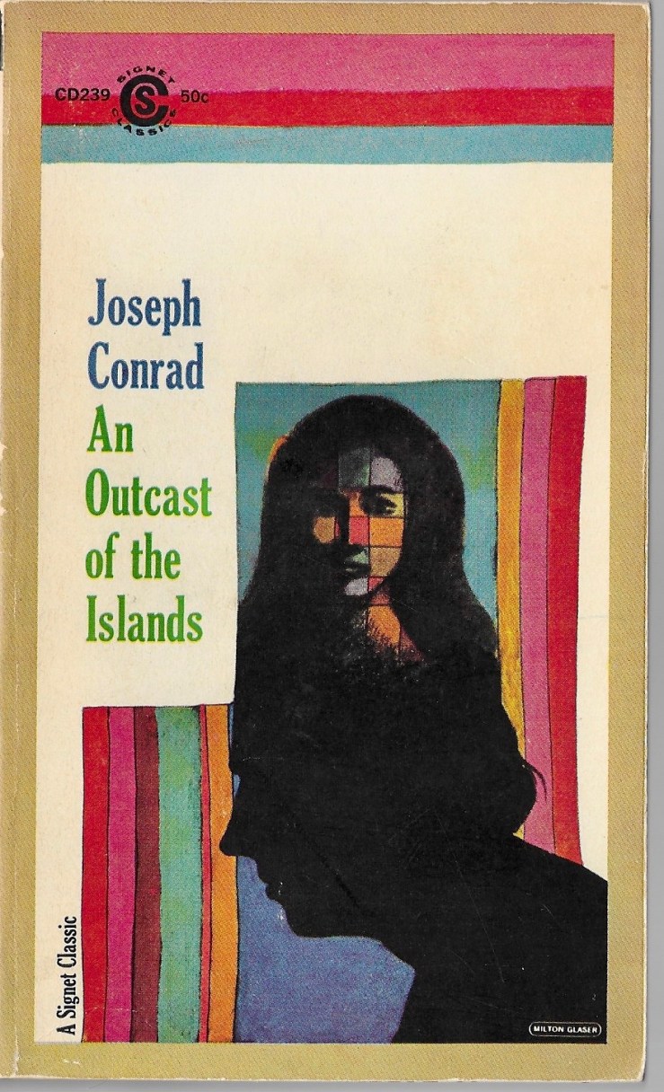 In the end though, I couldn’t pass up two books. First, I found a pristine first-edition Signet paperback of Joseph Conrad’s second novel An Outcast of the Islands with a striking Milton Glaser cover:
