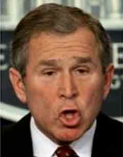 (Sorry, but after six-plus years I can’t keep up my outrage even long enough to write a decent post about this insane bastard. I can’t articulate how angry I am, and there isn’t enough room here to catolog all of Bush’s crimes. I’m tired of this shit.)