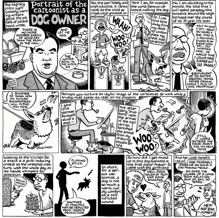 I rose from my chair hurriedly and remarking “——,” approached him at a rapid rate. He preceded me in the direction of the door. At the door he met Eliza coming in with eggs. Eliza observed “Ugh!” and sat down on the floor, the eggs took up different positions about the carpet, where they spread themselves out, and Gustavus Adolphus left the room. I called after him, strongly advising him to go straight downstairs and not let me see him again for the next hour or so; and he seeming to agree with me, dodged the coal-scoop and went, while I returned, dried myself and finished breakfast. I made sure that he had gone in to the yard, but when I looked into the passage ten minutes later he was sitting at the top of the stairs. I ordered him down at once, but he only barked and jumped about, so I went to see what was the matter. Continue reading ““On Cats and Dogs” — Jerome K. Jerome” →