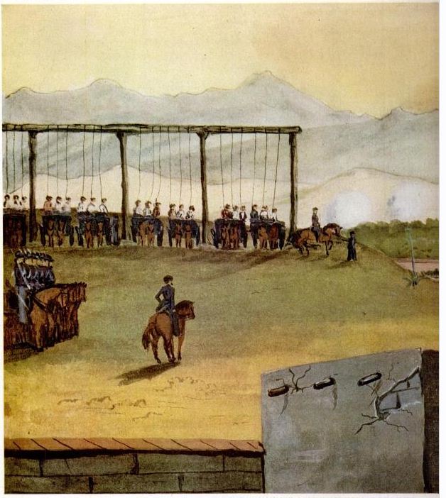 According to Chamberlain, John Glanton was born in South Carolina and migrated to Stephen Austin’s settlement in Texas. There he fell in love with an orphan girl and was prepared to marry her. One day while he was gone, Lipan warriors raided the area scalping the elderly and the children and kidnapping the women- including Glanton’s fiancee. Glanton and the other settlers pursued and slaughtered the natives, but during the battle the women were tomahawked and scalped. Legend has it, Glanton began a series of retaliatory raids which always yielded “fresh scalps.” When Texas fought for its independence from Mexico, Glanton fought with Col. Fannin, and was one of the few to escape the slaughter of that regiment at the hands of the Mexican Gen. Urrea- the man who would eventually employ Glanton as a scalp hunter. During the Range Wars, Glanton took no side but simply assassinated individuals who had crossed him. He was banished, to no avail, by Gen. Sam Houston and fought as a “free Ranger” in the war against Mexico. Following the war he took up the Urrea’s offer of $50 per Apache scalp (with a bonus of $1000 for the scalp of the Chief Santana). Local rumor had it that Glanton always “raised the hair” of the Indians he killed and that he had a “mule load of these barbarous trophies, smoke-dried” in his hut even before he turned professional.