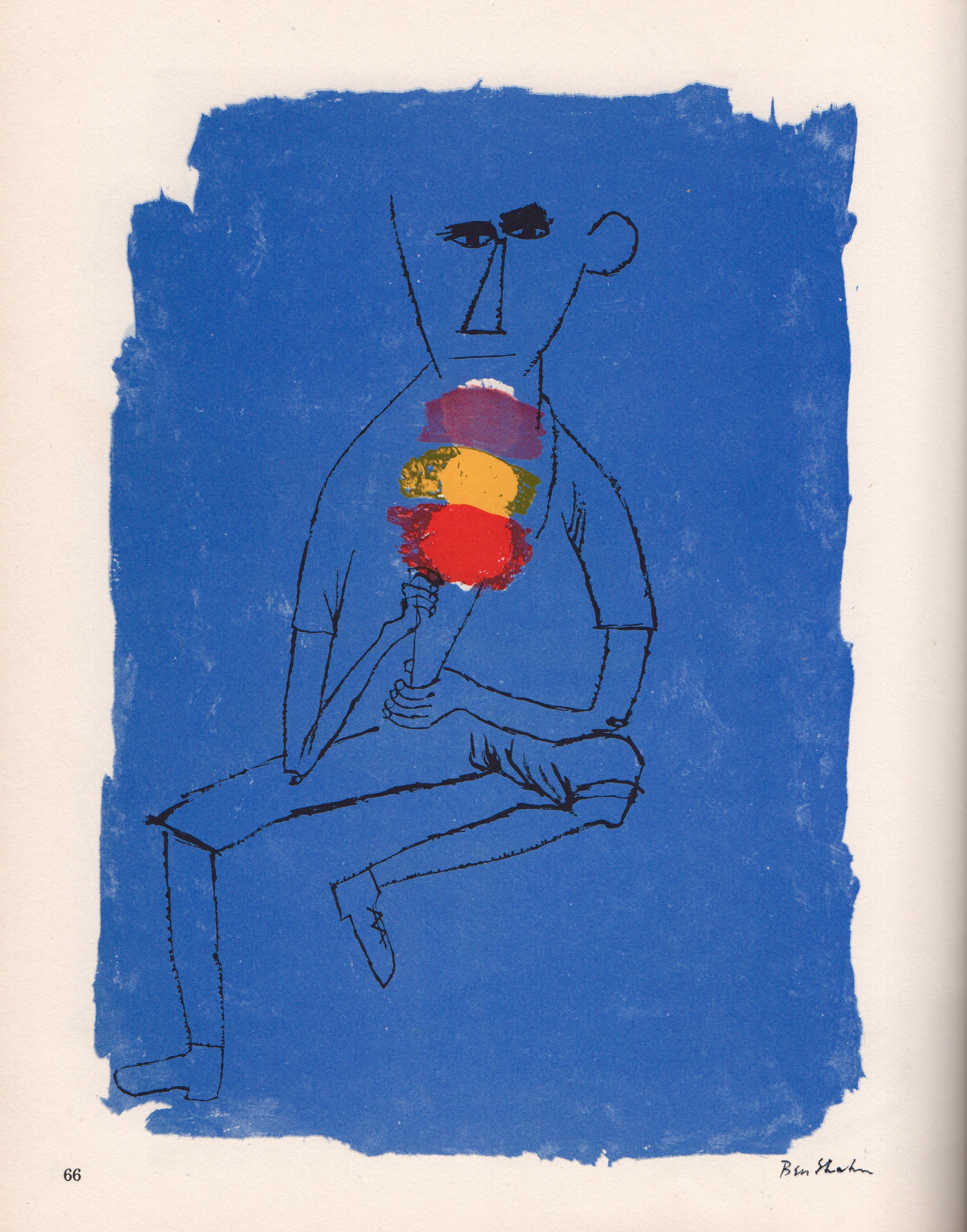 Triple Dip, 1952 by Ben Shahn (1898–1969). From Ben Shahn: His Graphic Art, George Braziller, Inc., NY 1957.