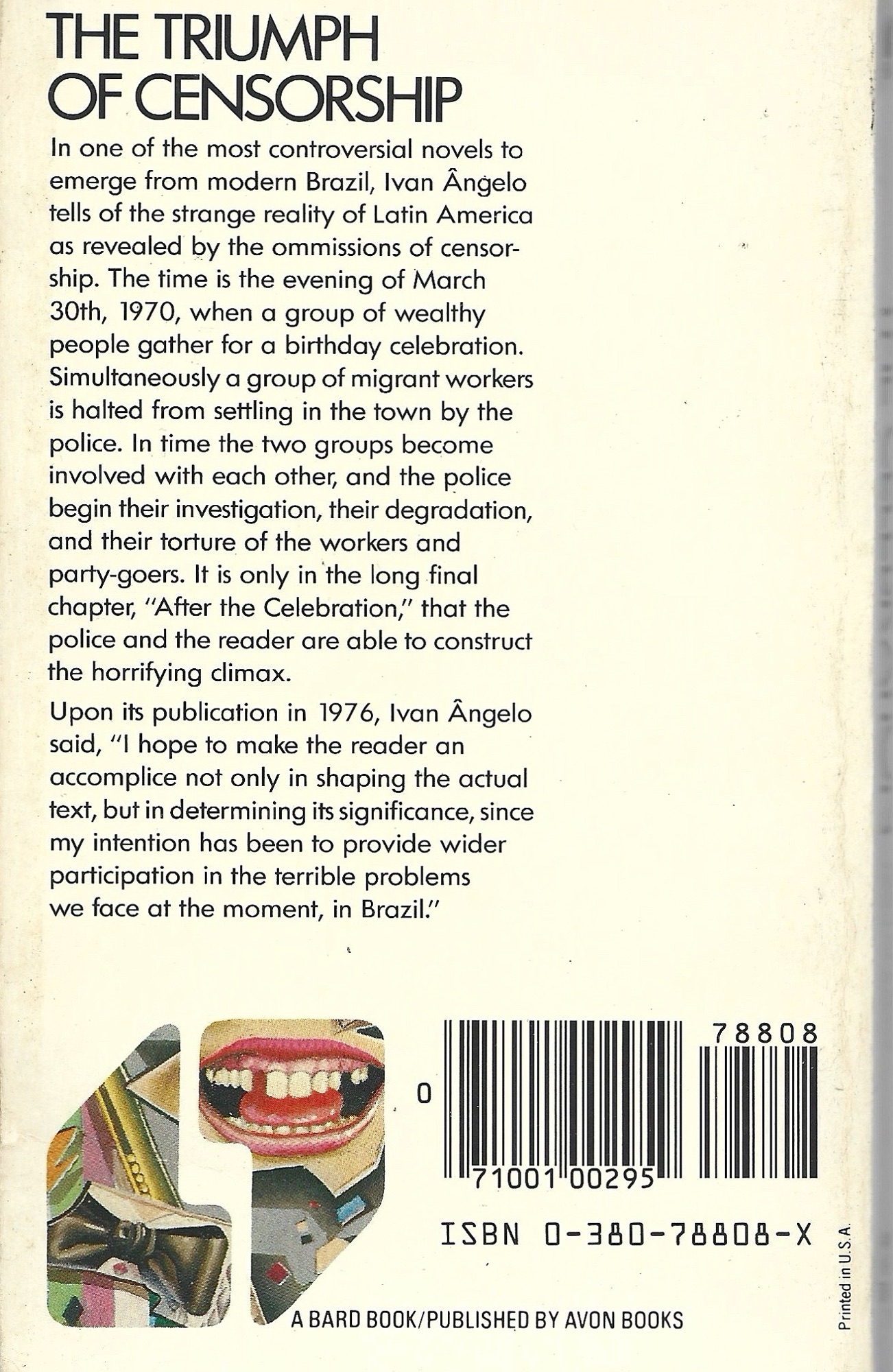 Driving home I realized that I might actually have a copy of an English translation of La colmena. I did: Anthony Kerrigan’s translation, The Hive. I pulled it out, started reading, and kept going. I love it! The next day my colleague brought in two Cela novels he’d read (and annotated the hell out of) in graduate school: La colmena and La familia de Pascual Duarte. I think that was on a Thursday. On Friday I browsed a used bookstore and picked up Kerrigan’s translation of Cela’s The Family of Pascual Duarte (with a cool Milton Glaser cover). I also picked up Ivan Ângelo’s novel The Celebration (in translation by Thomas Colchie); I’ve gotten to the point where I just scoop up any of the Avon Bard Latin American translations when I come across them — which is what I did a week later when I browsed a different used bookstore (or, really, a different location of the same booksellers; I was right next to this location because several of my son’s paintings were exhibited in a gallery nearby as part of a contest he had entered a few months ago without telling us (these details are not important to the story; my son is a talented painter though and I am proud).