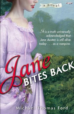 In Michael Thomas Ford’s novel Jane Bites Back, Jane Austen (you know, the Jane Austen) is an incognito vampire/bookstore clerk in upstate New York. Poor Jane is trying to get a new novel published (under a pseudonym, of course), but she suffers scores of rejection letters for her new work. Even worse is the horror of the Jane Austen industry, which, under the auspices of public domain laws, clutters Jane’s own bookshop with awful books that, like, don’t “get” the Austen oeuvre (in the climactic scene of the book’s opening chapter, Vampire Jane gets some measure of revenge by consuming the boorish author of an execrable volume entitled Waiting for Mr. Darcy). Of course, there’s got to be a plot, so Jane does get an offer for a book deal, one that’s complicated by accusations of plagiarism and other woes. To make matters worse, her old lover Lord Byron shows up (yeah, Byron, duh. How else would Jane Austen catch the vampirism?) There are other ghosts of literary past who show up, too, but why spoil surprises?