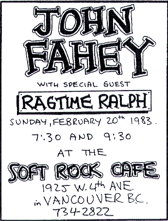 In the late nineties, indie rock kids–myself included–started embracing sounds that expanded beyond four white guys playing drums, bass, and guitar. Bands like Tortoise and The Sea and Cake bridged the way to the avant garde stylings of Gastr del Sol and Oval, opening up whole new sound-worlds to young ears. Gastr del Sol’s stunning 1996 record Upgrade and Afterlife featured a cover of Fahey’s “Dry Bones in the Valley” as the most beautiful closing statement imaginable. A whole new generation of listeners were introduced to cult fave Fahey’s cryptic finger-picking style via Gastr’s Jim O’Rourke, along with Table of the Elements records who released Fahey’s Womblife in 1997. Today, followers of Fahey’s sound include Six Organs of Admittance, Jack Rose, Glenn Jones, and James Blackshaw, among many others. Great stuff, all around.
