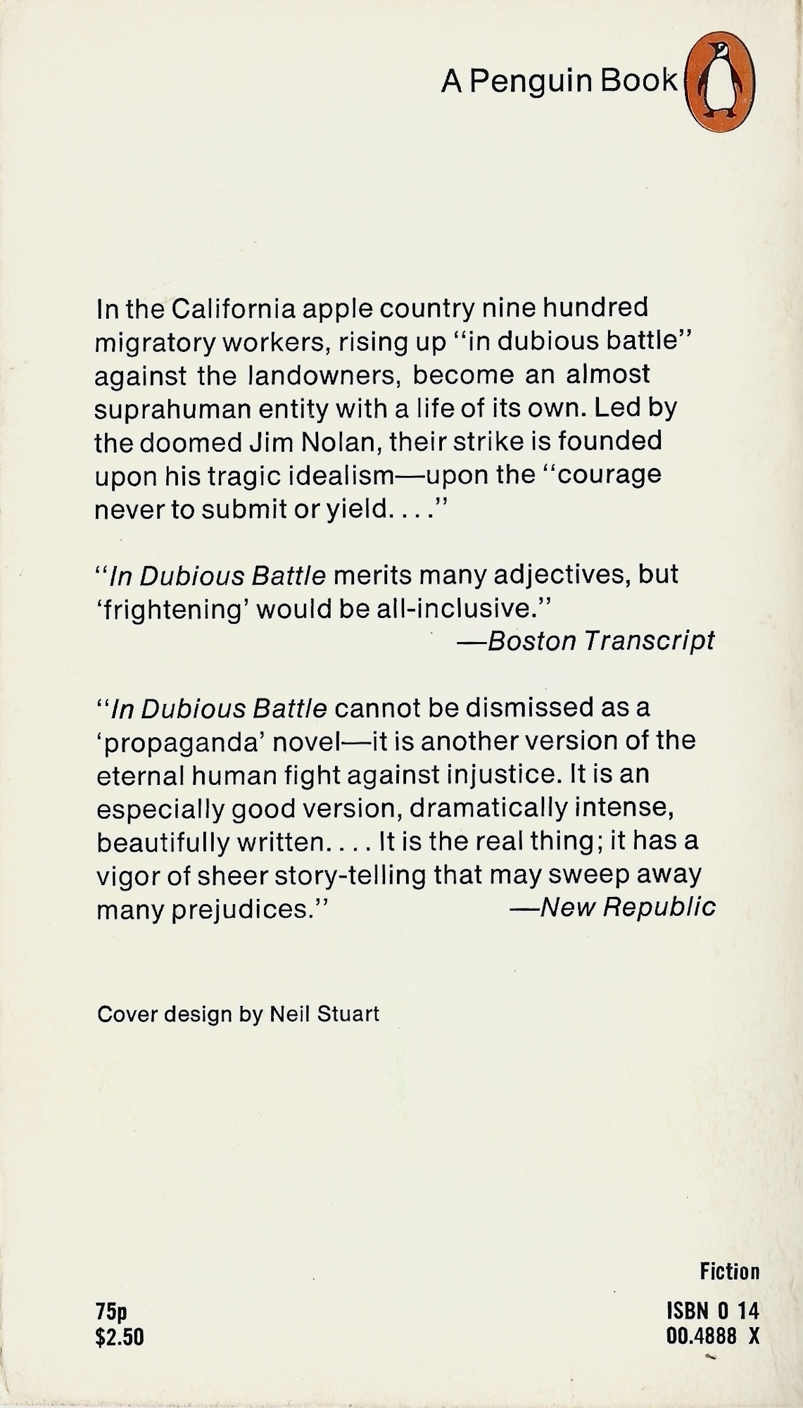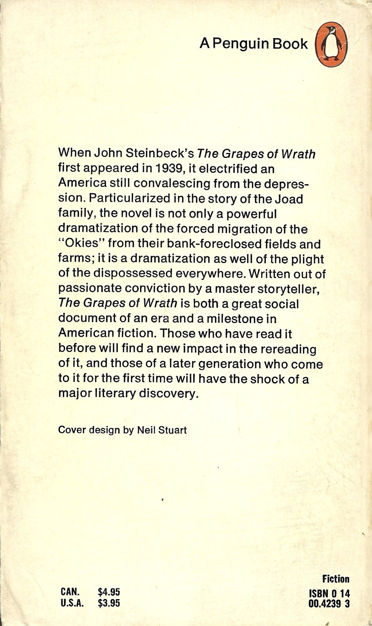 The Grapes of Wrath, John Steinbeck, 1939. Penguin Books (1979). Cover design by Neil Stuart. 502 pages.