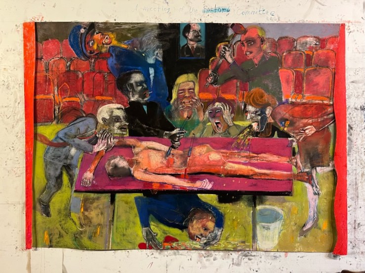 At what point does violence intersect with God? If one were to strip out the explicitly religious and moral moments, what would it look like for a kind religious man to submit what he considers his highest impulses to a brutal species of live surgery—sort of like in the underwhelming [David Cronenberg film] CRIMES OF THE FUTURE? I don’t have the answer to this question. But it’s the same ambiguity that exists between Sorokin’s dissidence and his apolitical aestheticism: the driving enigma of his work.