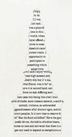 Bonus: Make your own Word Tower in the “Crystal Cage” machine. Here’s mine; I used snips from open tabs on my browser (two pieces from Gaddis and a Nietzsche):