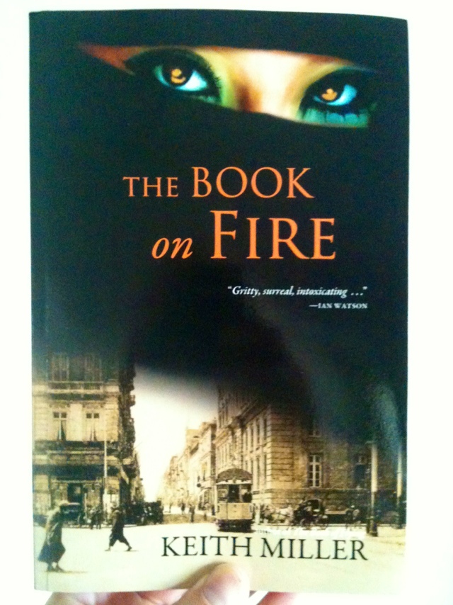 Balthazar, the hero of Keith Miller’s agile and trippy novel The Book on Fire, is a biblioklept. He comes to Alexandria to rob the famous library, a cavernous, labyrinthine complex that still exists–under heavy guard—in Miller’s mystical version of that ancient Egyptian city. Miller’s Alexandria is a byzantine maze, humming with a turn-of-the-century buzz, a kaleidoscope world that strongly reminded me of the strange cityscapes of William Gibson or William Burroughs. Here, Balthazar describes his attraction to Alexandria: