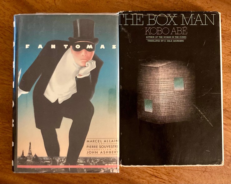 I picked up first edition hardbacks of The Box Man by Kobo Abe and Fantômas by Marcel Allain and Pierre Souvestre today at the used bookstore I like to wander around every other Friday afternoon (or, if I’ve had a bad week, maybe every Friday afternoon, or even a Monday, or Thursday). I wasn’t really looking for anything in particular (okay, I was looking for a physical copy of Joy Williams’ novel Harrow) but I couldn’t resist these two hardbacks (the Abe ate up the rest of my trade credit).