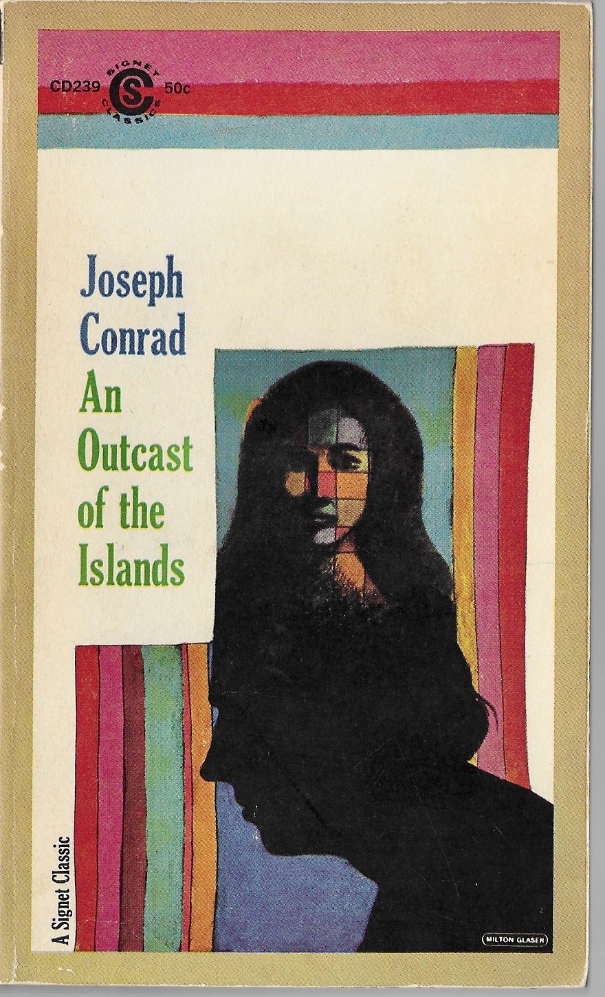 In the end though, I couldn’t pass up two books. First, I found a pristine first-edition Signet paperback of Joseph Conrad’s second novel An Outcast of the Islands with a striking Milton Glaser cover: