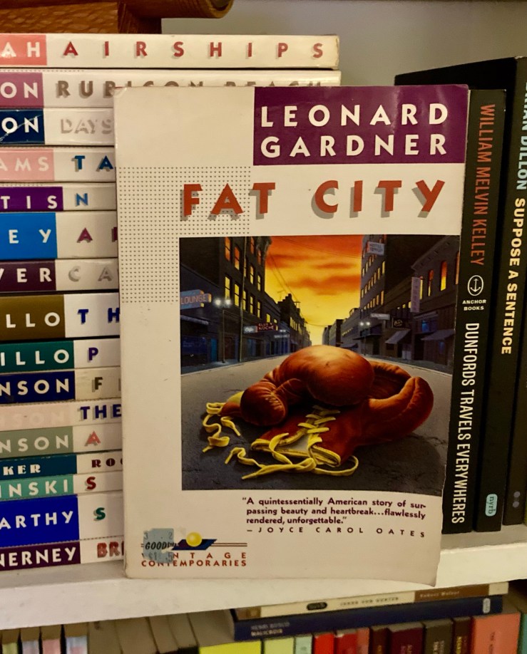 I wrote Top to bottom up at the top, but Leonard Gardner’s Fat City is in line with Stone’s Dog Soldiers—Stone’s losers, I guess. The book is about an “old” boxer (he’s not thirty) on the way out of his career and a young boxer on the rise. (Rise here is a really suspect term.) I really can’t believe I was 41 when I read this. I should’ve read it at 20. I wouldn’t have understood it the same way, of course, and the biggest sincerest compliment I can pin on the novel is that I would’ve loved it at 20 but I know that I would’ve appreciated it more 20 years later. There are plenty of novels that I read and think, Hmm, would’ve loved this years ago, but now, nah, but Fat City is wonderful. It’s a boxing story, sure, but it’s really a book about bodies breaking down, aging, getting stuck in dreams and fantasies. Gardner’s only novel (!) is simultaneously mock-tragic and real tragic, pathetic and moving, and very very moving. Great stuff.