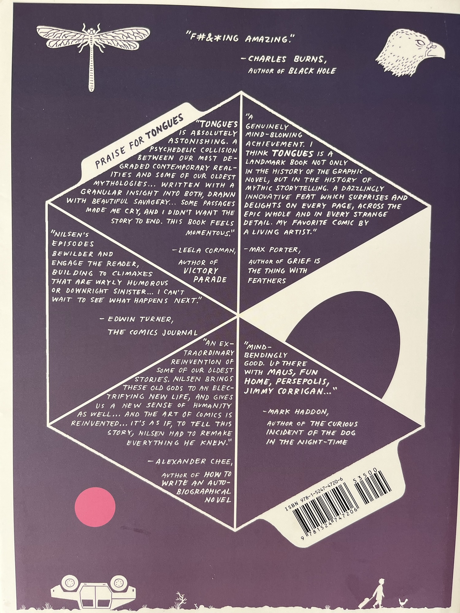 While I didn’t have the time in Atlanta to hit multiple bookstores (like in past trips), I made a point to hit up A Capella Books, a well stocked indie joint with a great used collection. I didn’t score anything there, although I was thrilled to see Anders Nilsen’s Tongues prominently featured in the graphic novel section. The book is great — I got a review copy right before we left. Some asshole named Edwin Turner landed a blurb on the back under his hero Charles Burns’s much shorter, pithier, better blurb: