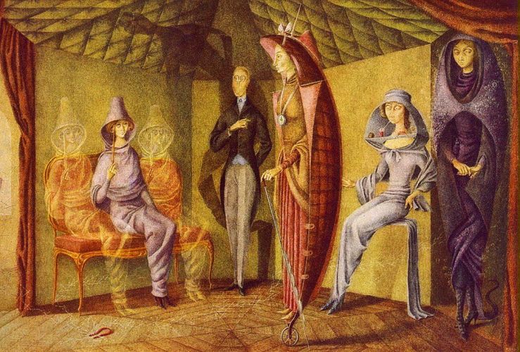 MC About her artwork, that’s not true. Varo was totally out there as an artist and very much interested throughout her career in exhibiting her work. As an emerging artist in the 1930s, she didn’t sit back and wait for things to happen. In the 1930s she moves to Barcelona, the home of the avant-garde in Spain, and joins artists who were radically breaking with whatever the conventions were back then. She’s on the map as an artist of note as early as 1936, when her paintings are included in the landmark Exposició Logicofobista in Barcelona. Later, after the Spanish Civil War breaks out and she moves to Paris, she’s in the 1938 Exposition Internationale du Surréalisme and images of her work are published in important Surrealist journals such as Minotaure and Trajectoire du rêve. After the Nazi invasion of France, she flees Europe for Mexico City in 1941 and there’s a pause in her exhibitions (she turned to commercial art to make a living) until 1955, when she exhibits new paintings in a group show of women artists that includes Leonora Carrington and Alice Rahon.