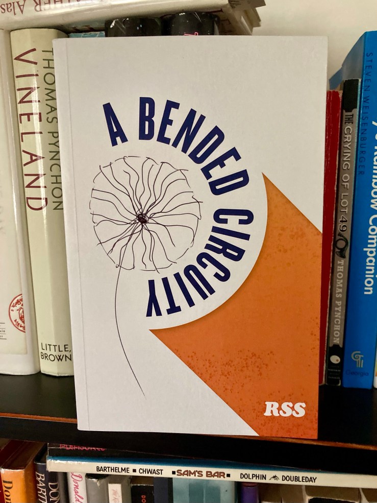 –is this the part where I also rant about my eyes going to seed, my eyes of forty-five years, stalwart fellows for most of those years, but now fading? eyes now needing nose-bridge-irritating lenses to be able to read finer print at first and now not-so-fine print? eyes that will need a new set of so-called readers with a higher rate of magnification simply to comprehend the little marks on the huge copy of RSS’s A Bended Circuity I obtained way back in November of last year? my eyes that are also having a hard time with Dalkey’s reissue of Marguerite Young’s Miss Macintosh, My Darling, not included in this riff and pic of books acquired in April because it is new, a new printing? I guess that was the eye rant, so—