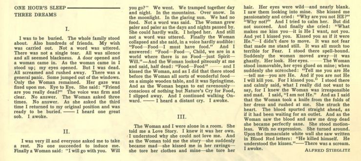 “One Hour’s Sleep—–Three Dreams” — Alfred Stieglitz