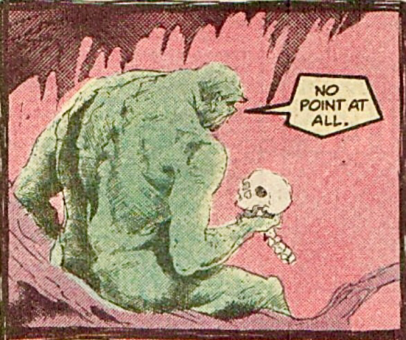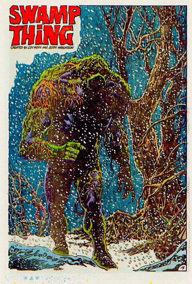 I’ve been rereading Moore’s run on Swamp Thing and am amazed anew at the comic’s cinematic construction, moody tone, and mix of simplicity and depth in storytelling. Wood’s moody, atmospheric coloring is unlike anything I can think of in contemporary 1980’s “superhero” comics, and Swamp Thing’s detailed contours seem impossible without Totleben’s intricate inking. I plan to write a “thing” on Moore’s Swamp Thing era down the line, but for now, I’m surprised at now just how well it holds up, but how well-constructed the team’s efforts were, right out of the gate on the early issues.