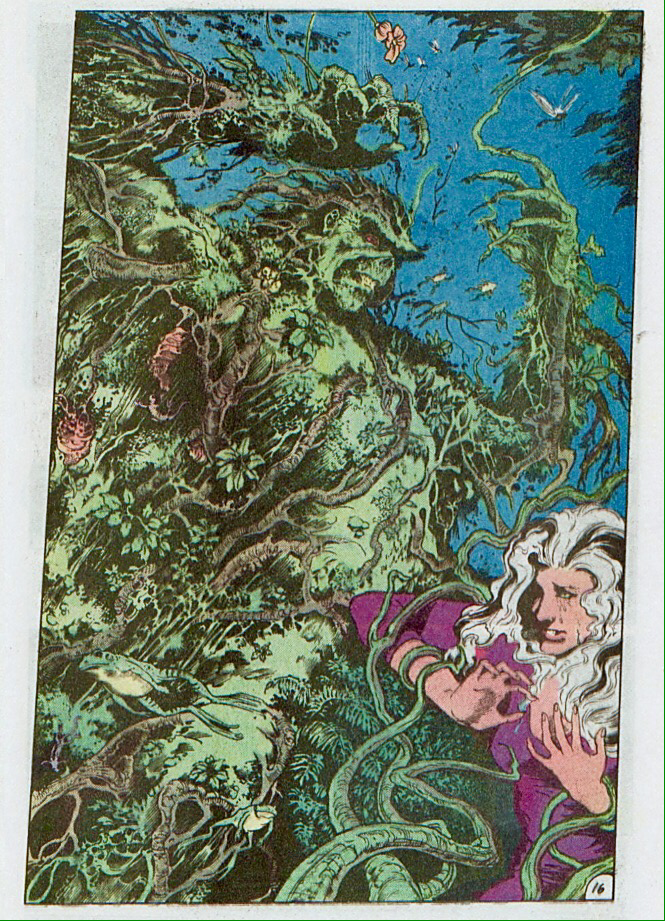 From “A Halo of Flies,” The Saga of the Swamp Thing #30, November 1984. Art by Stephen Bissette with guest inks by Alfredo Alcala; coloring by Tatjana Wood.