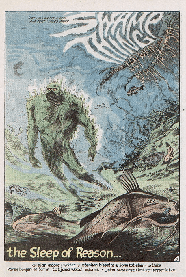 From “Swamped,” The Saga of the Swamp Thing #22, March, 1984. Art by Stephen Bissette and John Totleben; coloring by Tatjana Wood. Script by Alan Moore.