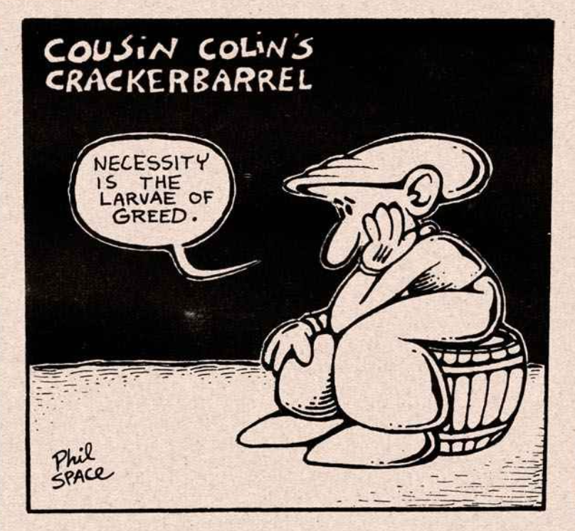 A one-panel gag by Jay Lynch (as “Phil Space”) from Gothic Blimp Works #3, 1969, the East Village Other.
