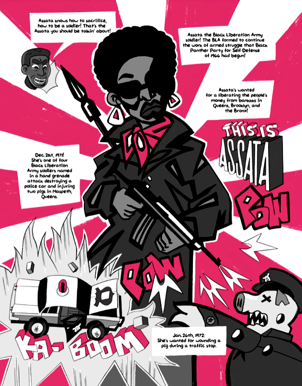 A page from Ben Passmore’s graphic novel Black Arms to Hold You Up, Pantheon, 2025. Assata Shakur passed away on 25 Sept. 2025. She was free.