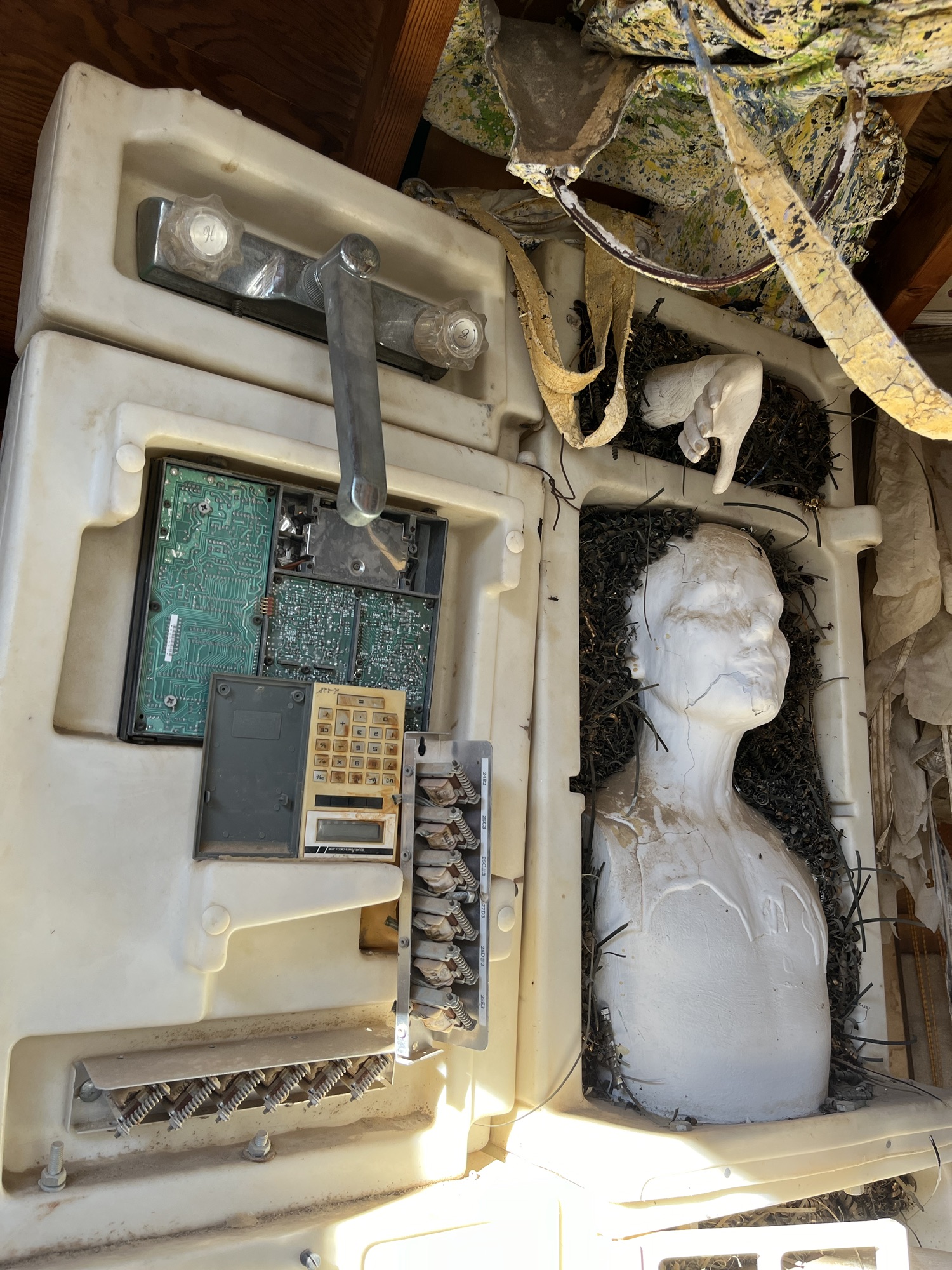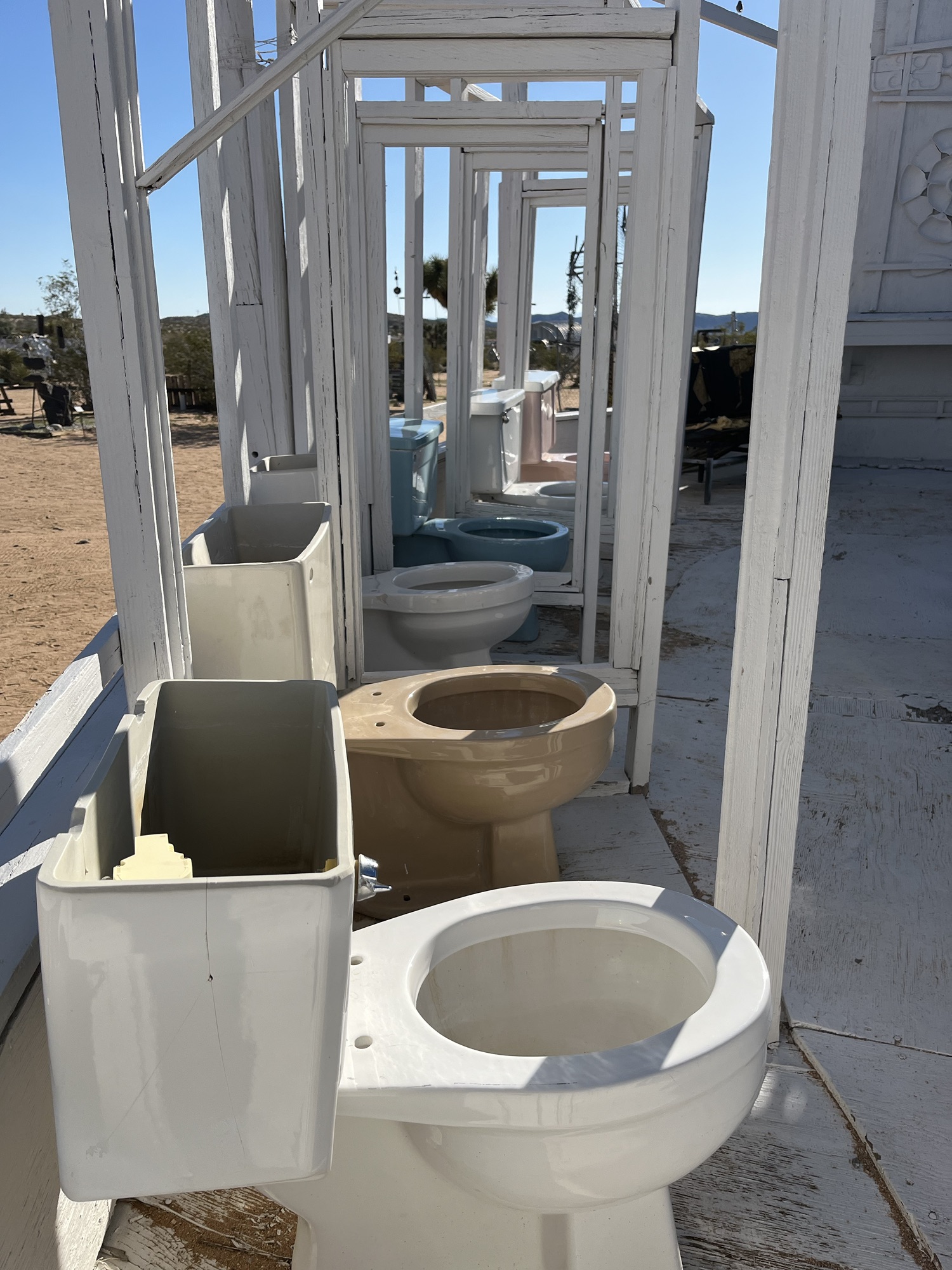 We loved Joshua Tree (park and city), and one highlight was the Noah Purifoy Outdoor Museum, a loose, sprawling collection of sculptures, installations, and buildings cobbled together out of the detritus of the twentieth century. Walking through the Museum is kind of like being on the disused set of a post-apocalyptic film, under the beautiful clear California sun filled sky. Cottontails and roadrunners hopped about as we wandered among Purifoy’s deconstructed constructions, sometimes apprehensive to enter or touch, before the sun and wind and arid sky itself reminded us that the whole tableau was naked, exposed, raw on the earth, open for contact.