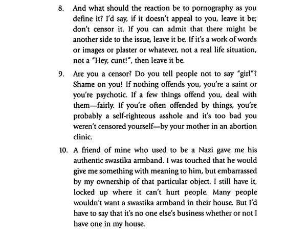 I think just: I haven’t read a lot of the new stuff that’s come out over the last few years. Like Steve Erickson, and Tours of the Black Clock—it’s really fucking good. I thought Bret Ellis’s first book, I thought it was very, very powerful. American Psycho—I thought he was really ill-served by his agent and publisher even letting him publish it, and those are the only two things of his that I read. But that’s, I think this is another danger: you get lavishly rewarded for that first book, and it’s gonna be very difficult for him ever to do anything else. I mean there’s gonna be part of you that just wants to do that over and over and over again, so you continue to get the food pellets of praise. It’s one more way that all this stuff is toxic.